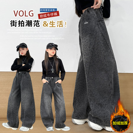 D219蝴蝶结卡通刺绣加绒牛仔裤