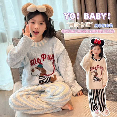 米咔精灵&2771笑脸刺绣加厚外套弯刀裤套装休闲