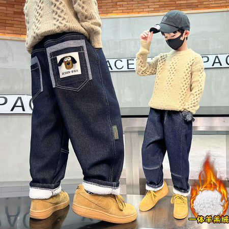 佩奇王国&男童-231款-立体小狗羊羔绒牛仔裤