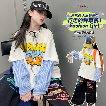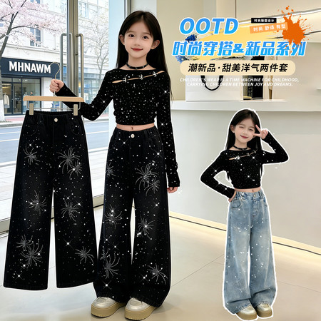 灵宝儿&2602衬衫袖T桖牛仔裤套装