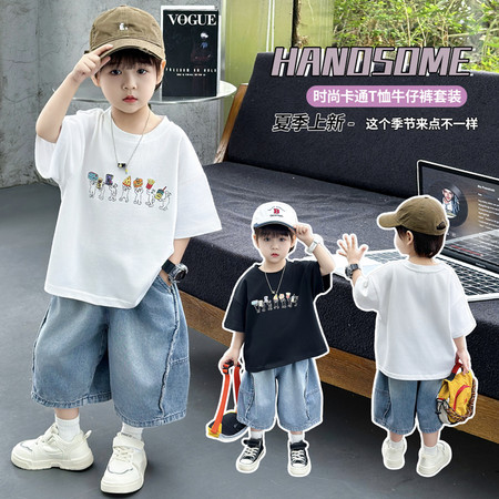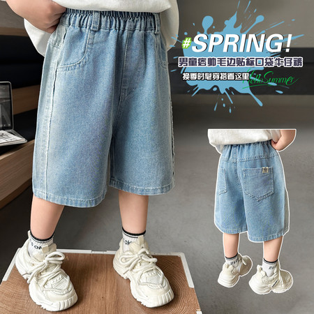 佩奇王国&男童-213款-净色绿笑脸牛仔裤