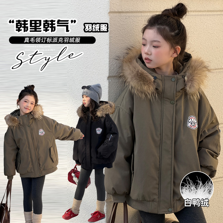 蓝月亮&2585款两面穿加厚连帽貂毛外套