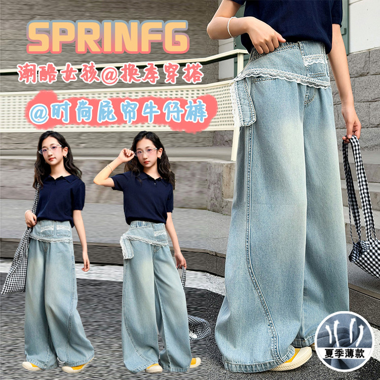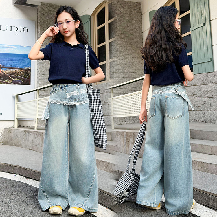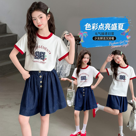 蕊蕊&R255款大脸猫T恤牛仔中裤套装