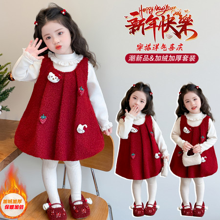 双鱼妮妮&SY-2545女童围巾毛衣拜年服套装