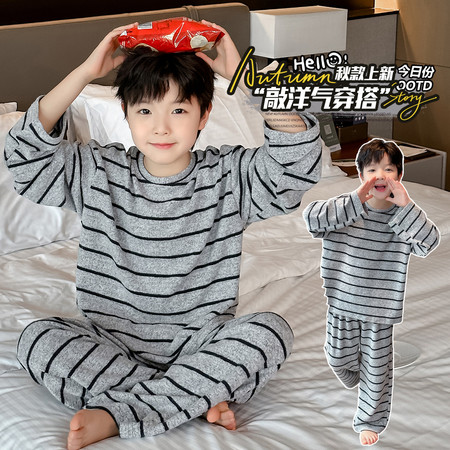 积木飞扬家居服(原积木城堡)&572男童纯棉藏青条子套装