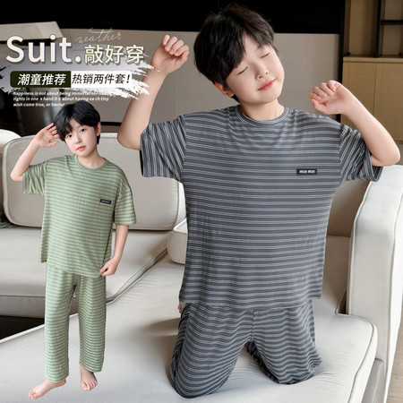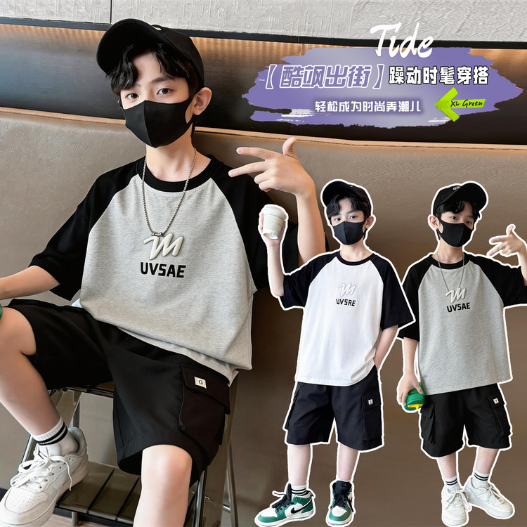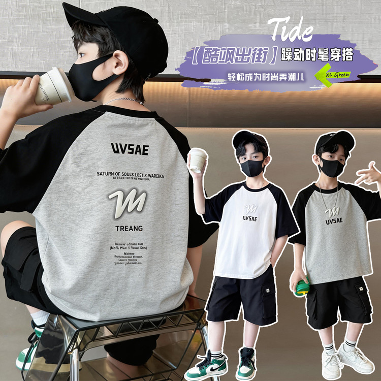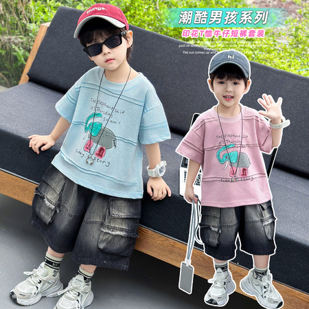 贝贝王子&26015男童满印抛花夏款套装