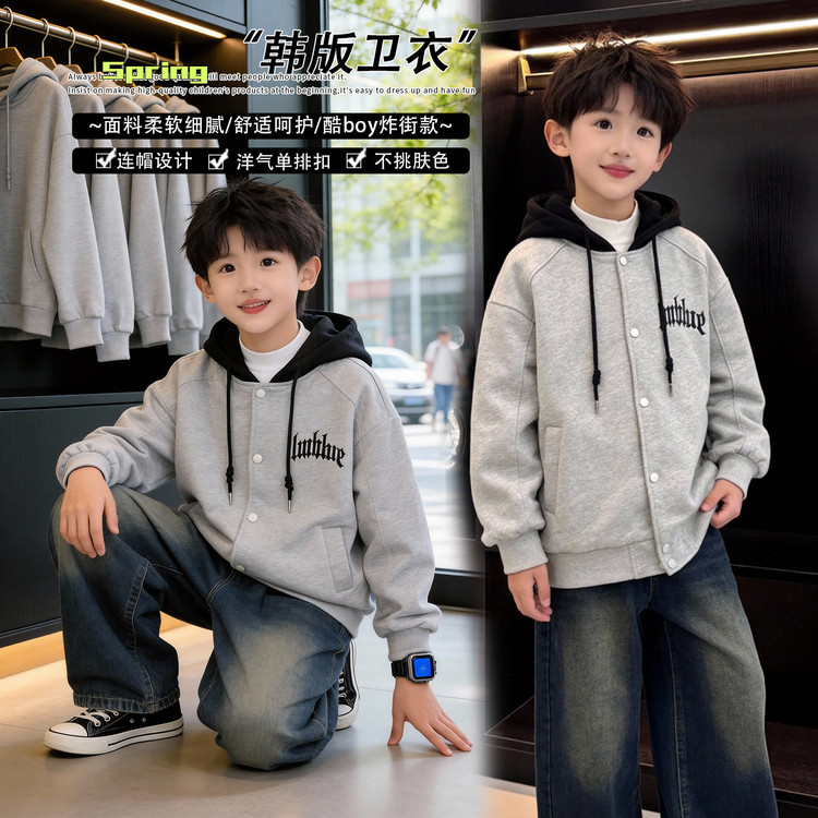 米咔精灵&66022字母小B连帽休闲外套春季新款