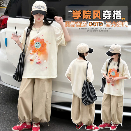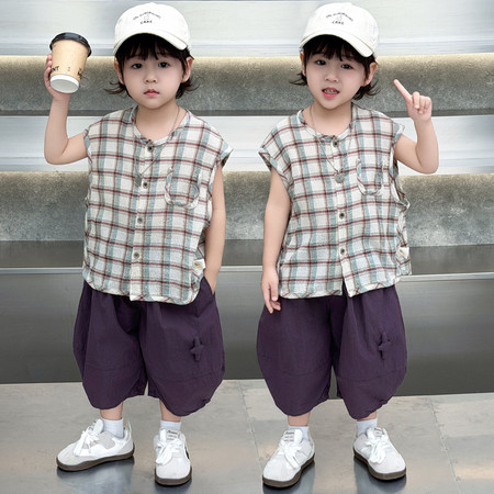 益众乐童装&镂空背心七分裤两件套