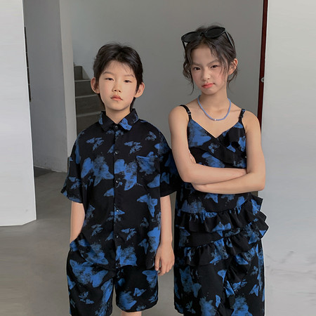 叮当家&2609款蓝色花小熊挂件衬衫套装