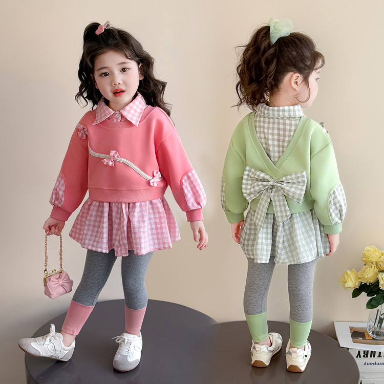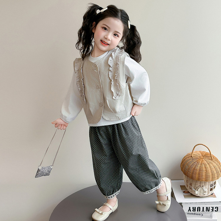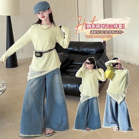 梦幻小镇童装&2603款韩系荷叶边三件套