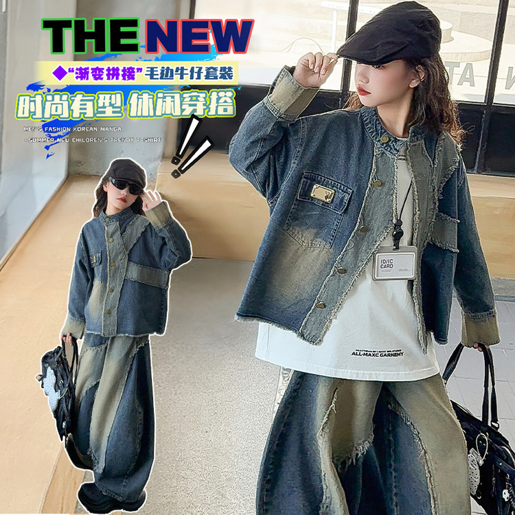 爆版熊&B811-衬衫袖假两件字母贴标套装