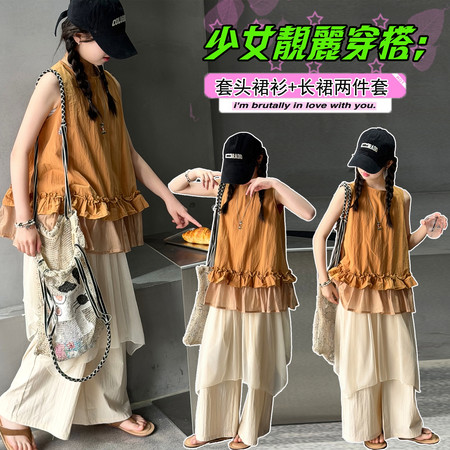 蕊蕊&R258款冰丝防晒开衫小花半身裙套装